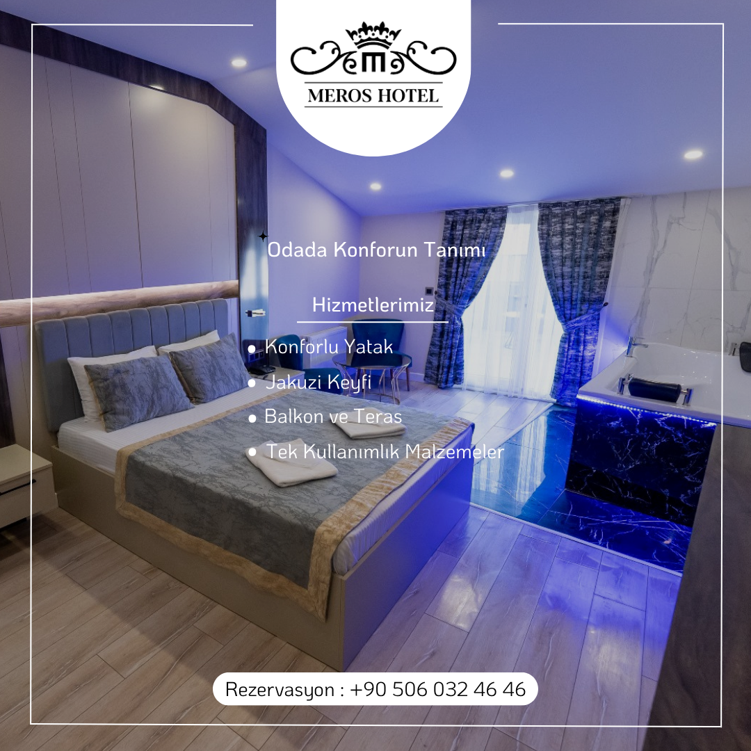 Gürültüden uzak, izole ve konforlu odalarımızda dinlenirken, şehrin temposunu geride bırakabilir, kendinizi tamamen yenileyebilirsiniz. Ev konforunda otel deneyimi ile Meros Hotel, İstanbul’da gerçek bir huzur noktasıdır.